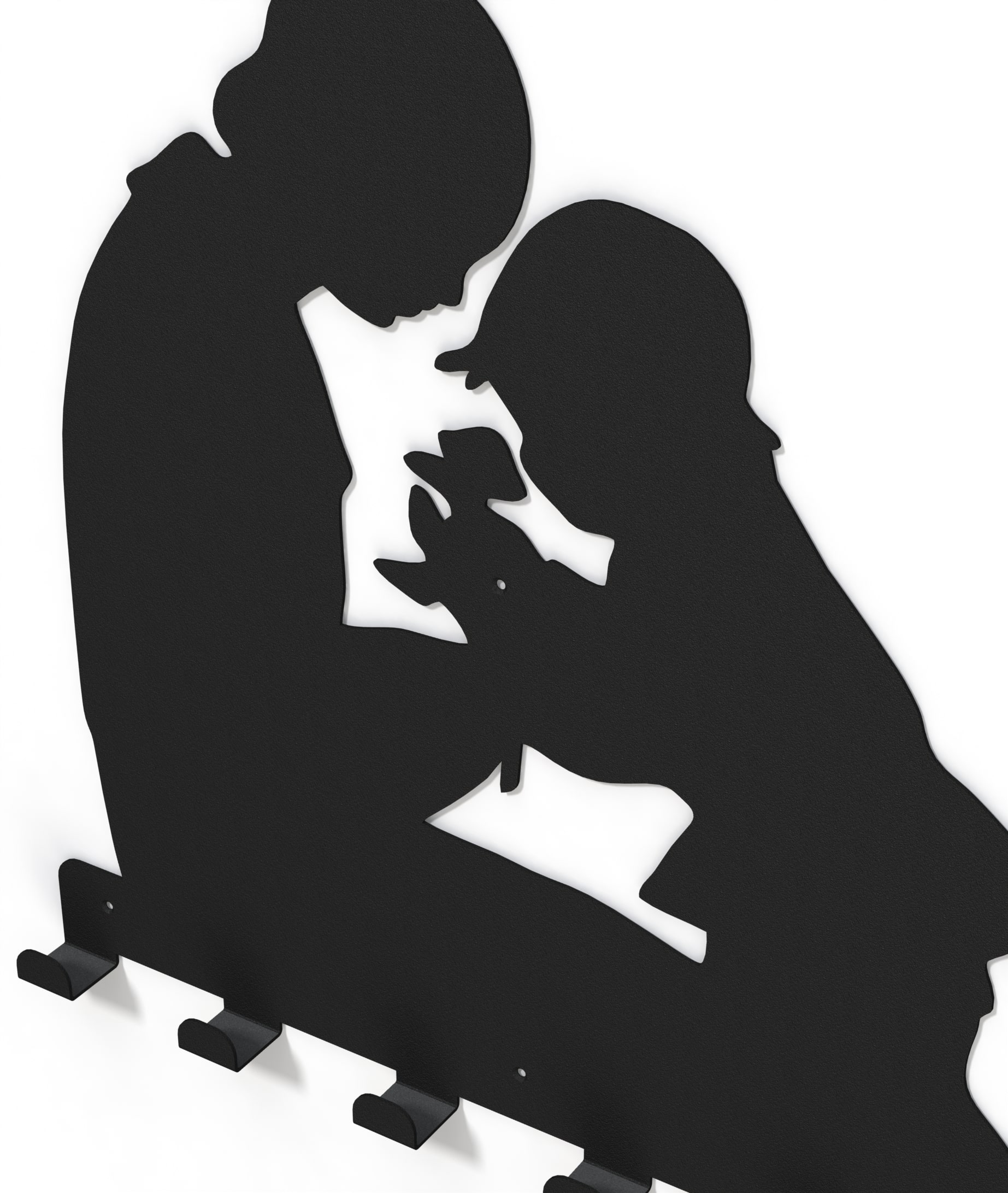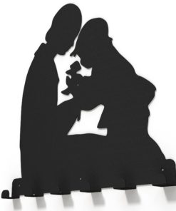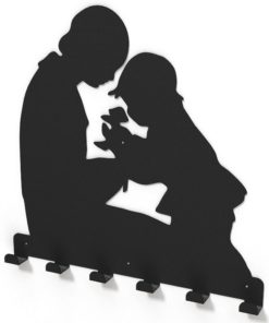 Cuierul metalic ce reprezinta un baietel oferind flori mamei sale, aduce un aer familiar, intim holului, vestiarului sau spatiului unde este amplasat.